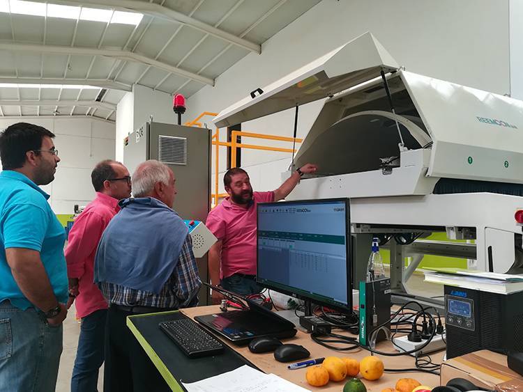 綠萌已經(jīng)在中國陜西、南非成立控股子公司,在西班牙、埃及、以色列、印度等國家成立代銷處。(圖為綠萌在西班牙李子主產(chǎn)區(qū)安裝的第一臺分選機。)