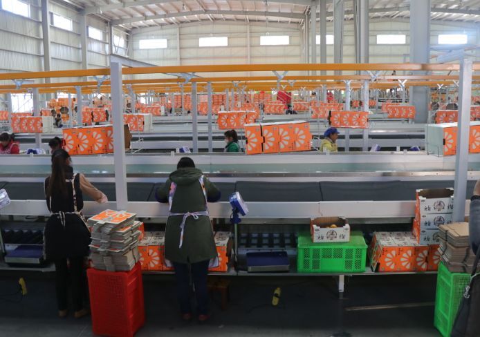 1000多萬的設(shè)備、100多位工人、1秒鐘可以分選11個橙子、日處理量400噸……