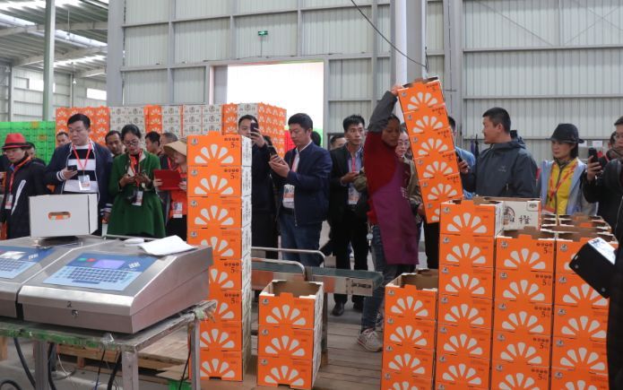 打包好的褚橙通過傳動帶送出