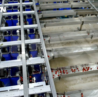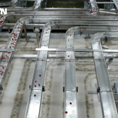全不銹鋼水槽輸送完成分級的櫻桃,冷水輸送保證櫻桃處于冷環(huán)境下以維持櫻桃品質(zhì)的穩(wěn)定性,并且全程可視化,避免櫻桃因滯留而變味。