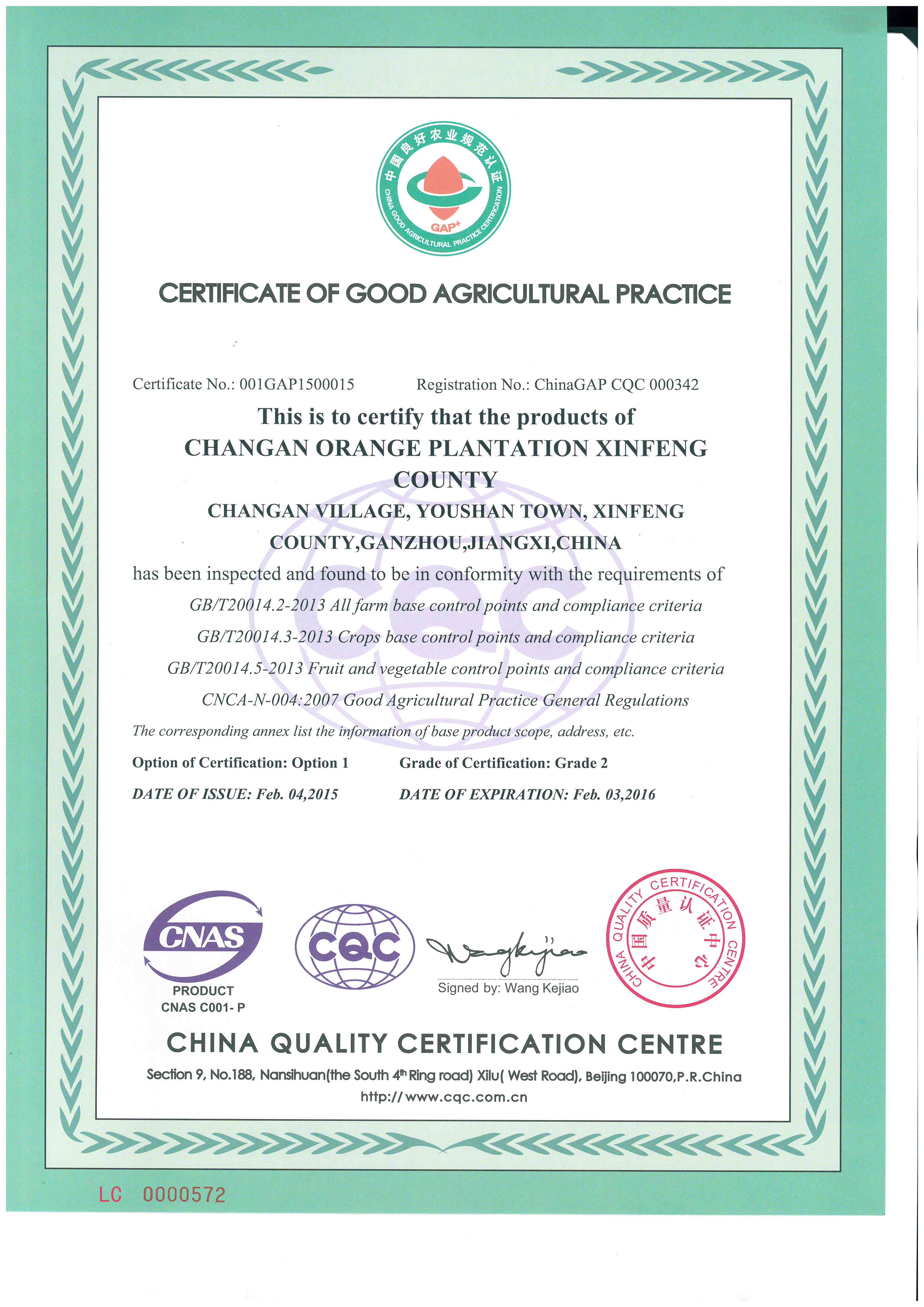 Good Agricultural Practice Certificate