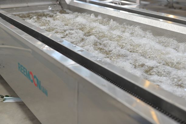 水內(nèi)提前放入3~5°的冷水,荔枝清洗完后被輸送到預(yù)冷池進(jìn)行預(yù)冷,以維持荔枝的品質(zhì)。
