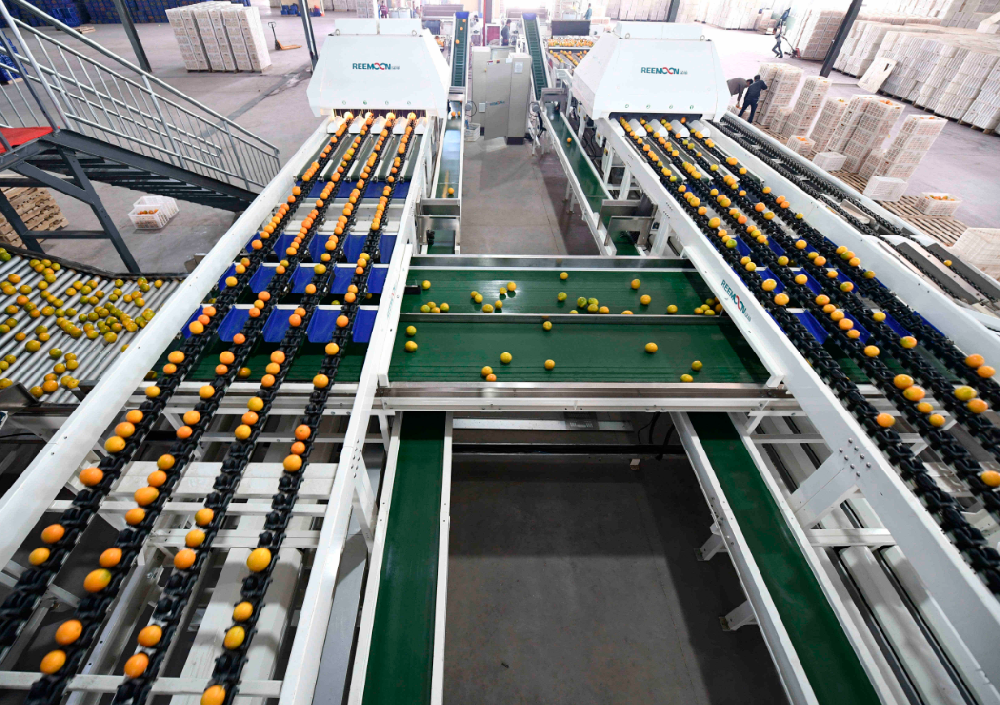 根據(jù)分選結(jié)果和客戶需求,在出口處對橙子進(jìn)行標(biāo)準(zhǔn)定量裝箱,自動輸出,無需人工稱重裝箱,提高生產(chǎn)效率。