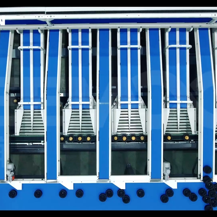配有9組皮帶出口,每組出口配有兩個(gè)規(guī)格,可以容納9人在線包裝,梨包裝完畢后直接放入成品輸送帶上,無(wú)需人工匯集,省事方便,出口數(shù)量還能根據(jù)客戶要求增加或減少。